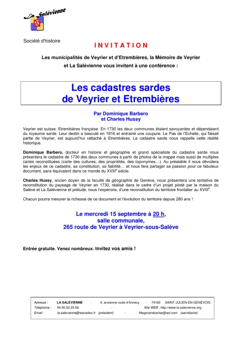Plus d'infos...Benon n°70Conférence : Les cadastres sardes de Veyrier et d'Etrembières