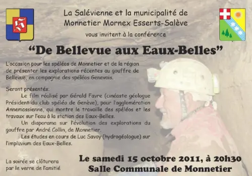 Plus d'infos...Conférence : De Bellevue aux Eaux-Belles (l'eau dans les grottes du Salève)