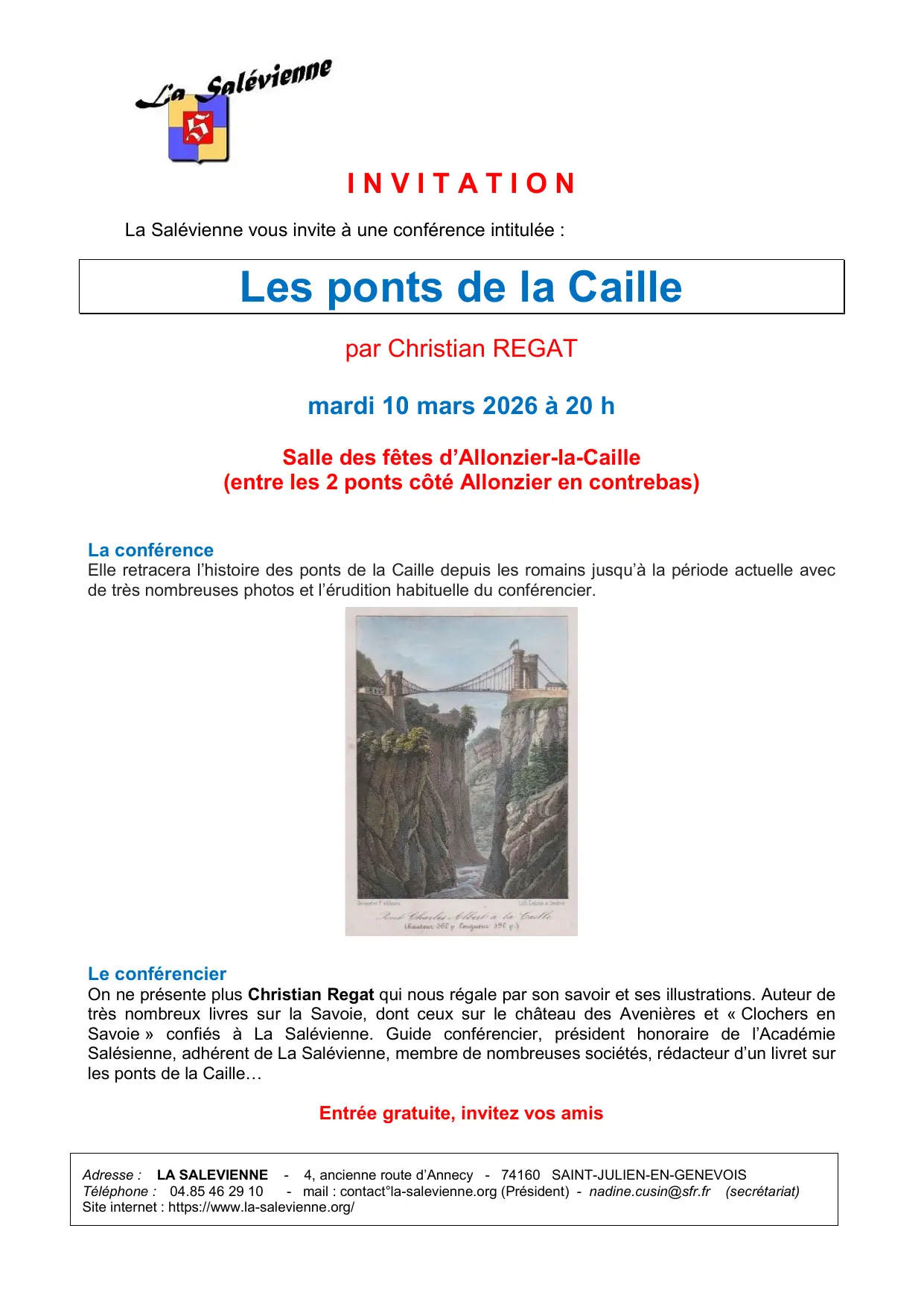 Conférence : Les ponts de la Caille, organisée par La Salévienne