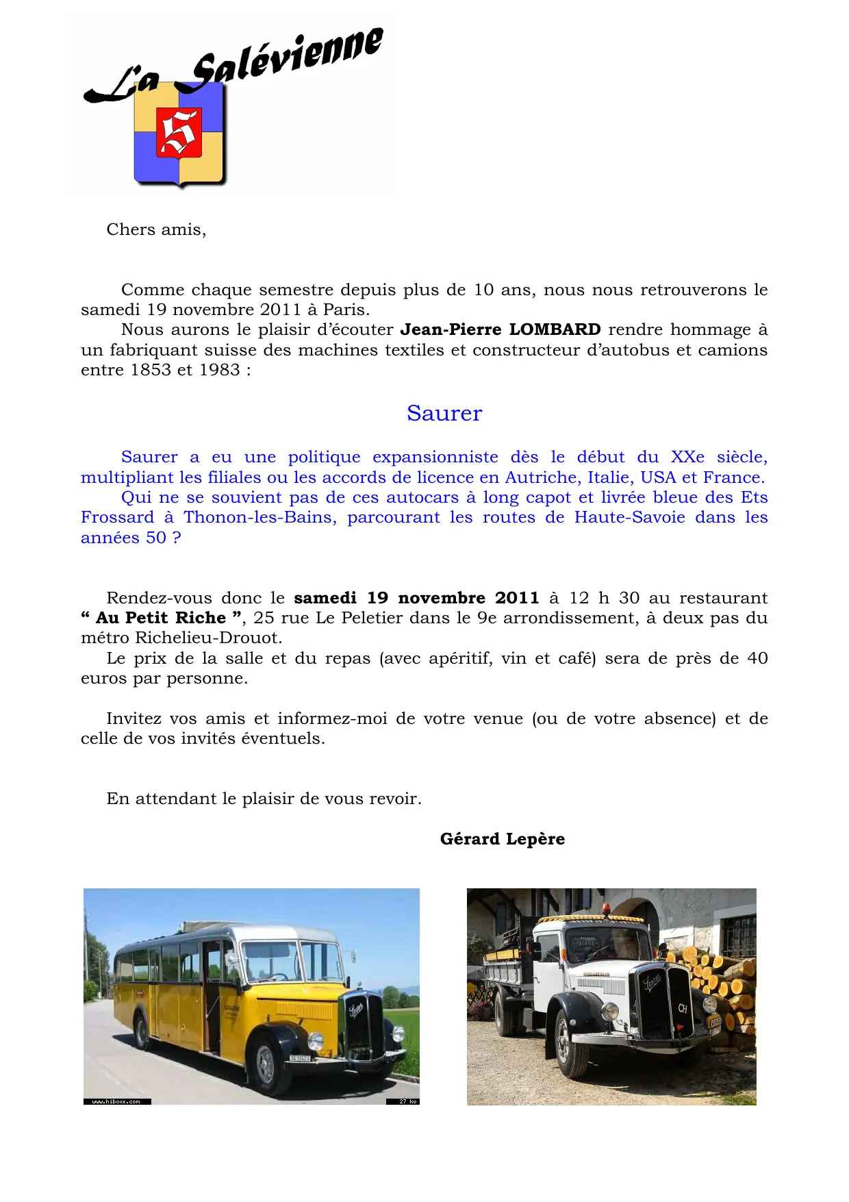 Conférence : Saurer (fabriquant suisse des machines textiles et constructeur d’autobus et camions) , organisée par La Salévienne