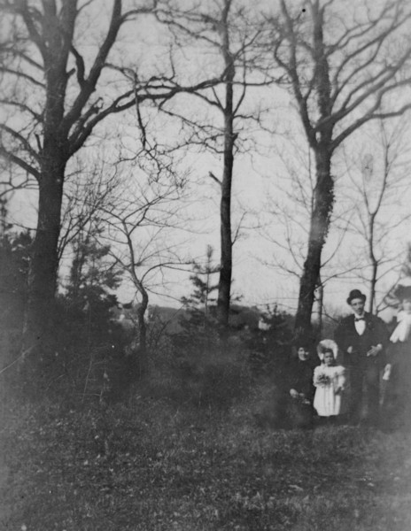 Ce groupe de 4 personnes (1 homme, 2 femmes et une enfant en blanc) dans l'herbe près de trois arbres sans feuilles reste à identifier : merci de nous aider... (email : contact@la-salevienne.org)
