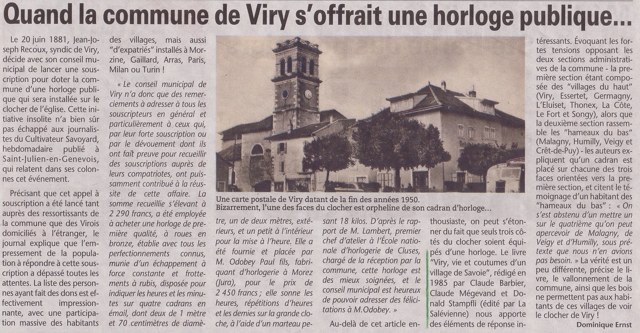 "Quand la commune de Viry s'offrait une horloge publique…"