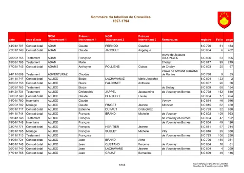 Sommaire des actes du tabellion de Cruseilles 1697-1794
