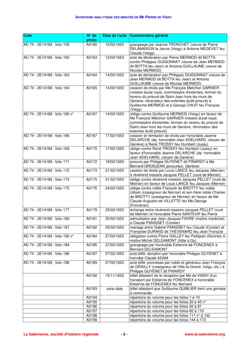 Inventaire analytique des minutes de Me Pierre de Vigny