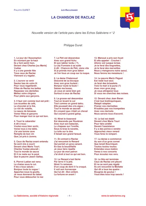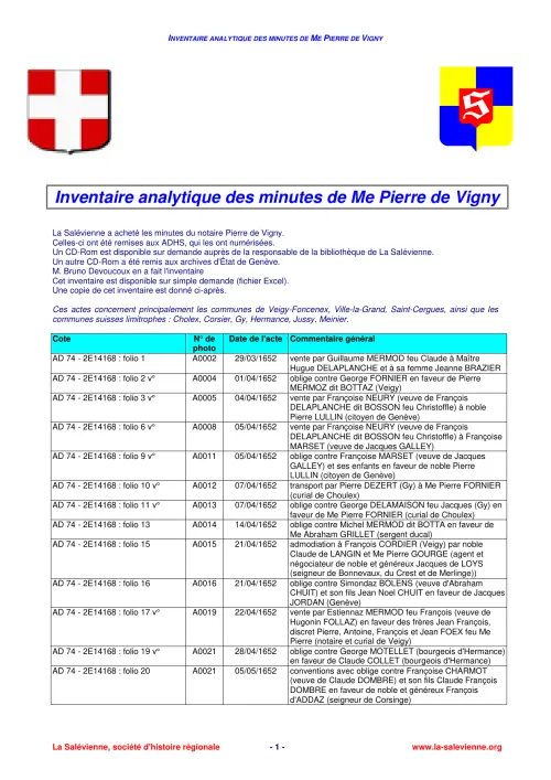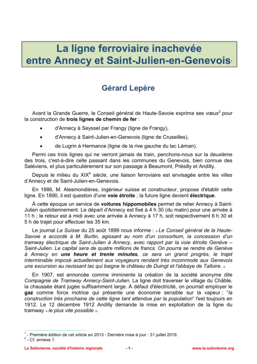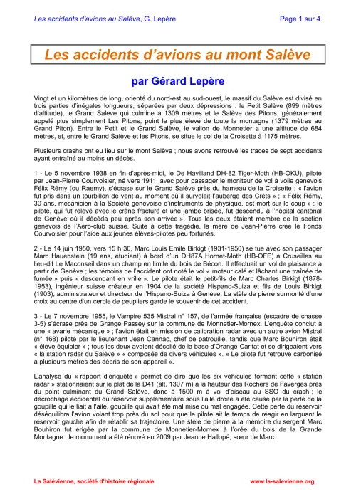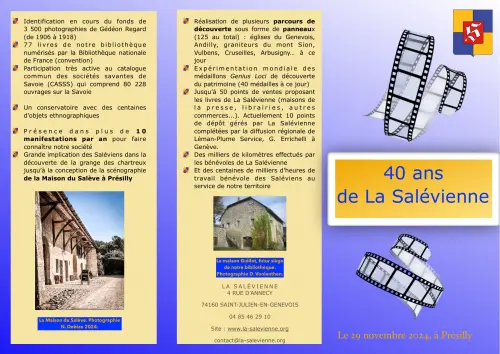 Note : Les textes sont publiés sous la responsabilité des auteurs. Les coordonnées de La Salévienne présentées dans certains documents anciens ne sont plus valables. Veuillez plutôt vous référer à cette page.